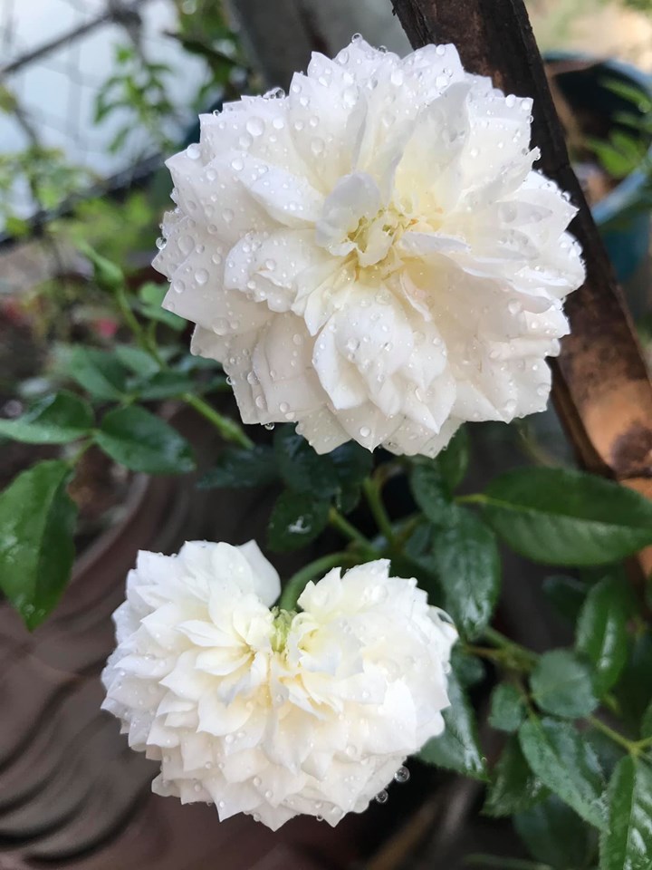 Sau cùng, ta che nắng cho chậu hồng, hoặc mang chậu vào nơi có bóng râm, giúp cây khỏi héo úa.