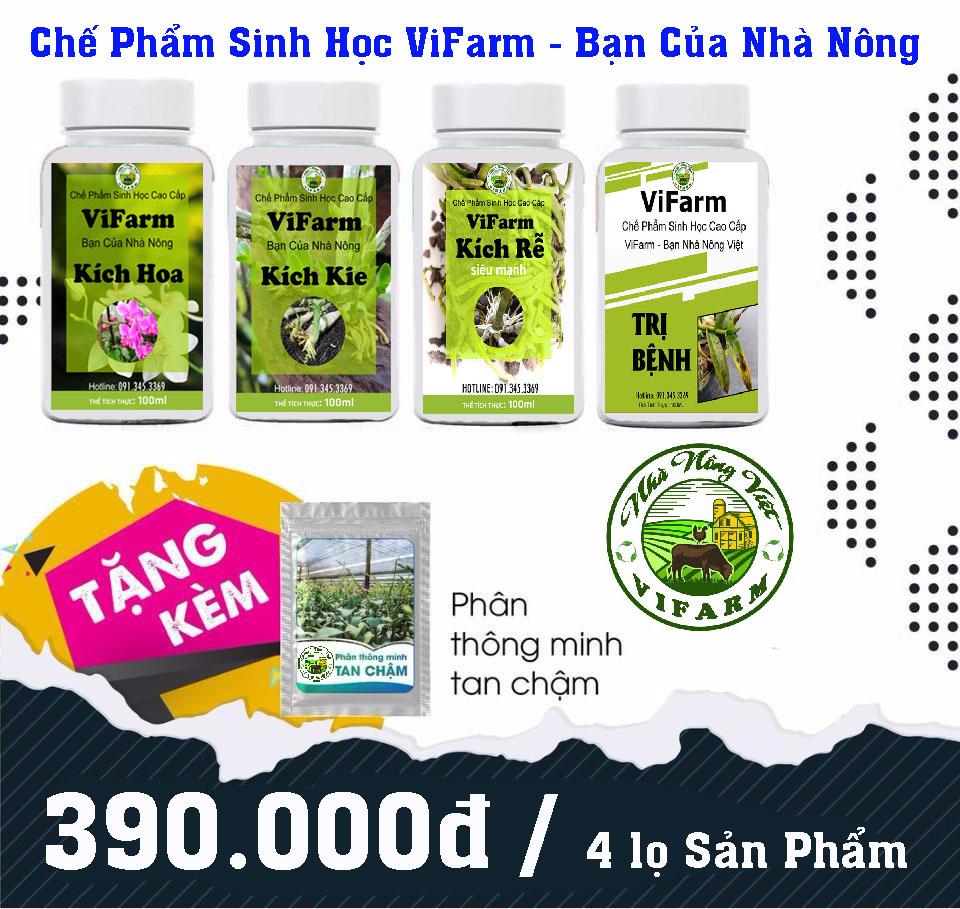 Công dụng của chế phẩm trị thối lá non, ngọn và rỉ sắt khá tốt. Với thành phần từ tự nhiên Vifarm trị bệnh có thể trừ bệnh phổ rộng, tiêu diệt nấm bệnh thông qua cơ chế ngăn cản sinh tổng hợp Ergosterol (chất cấu tạo nên màng tế bào nấm bệnh), nấm bệnh sẽ bị cô lập và ngừng phát triển do chúng không hình thành được tế bào mới. Vifarm được mô cây hấp thu nhanh, chuyển vị và lưu dẫn mạnh nên kiểm soát nấm bệnh nhanh chóng, hiệu quả và kéo dài bằng cơ chế vừa phòng vừa trị bệnh. Đây là loại thuốc được nhà vườn sử dụng phổ biến nhất. Vifarm được bán với giá cả hợp lý, hiệu quả nhanh, phí ship cực rẻ và được freeship khi mua chọn bộ 4 sản phẩm Vifarm: Trị bệnh – Kích rễ – Kích kie – Kích hoa kèm theo đó là 3 gói phân tan chậm của Nhật Bản hoàn toàn miễn phí.