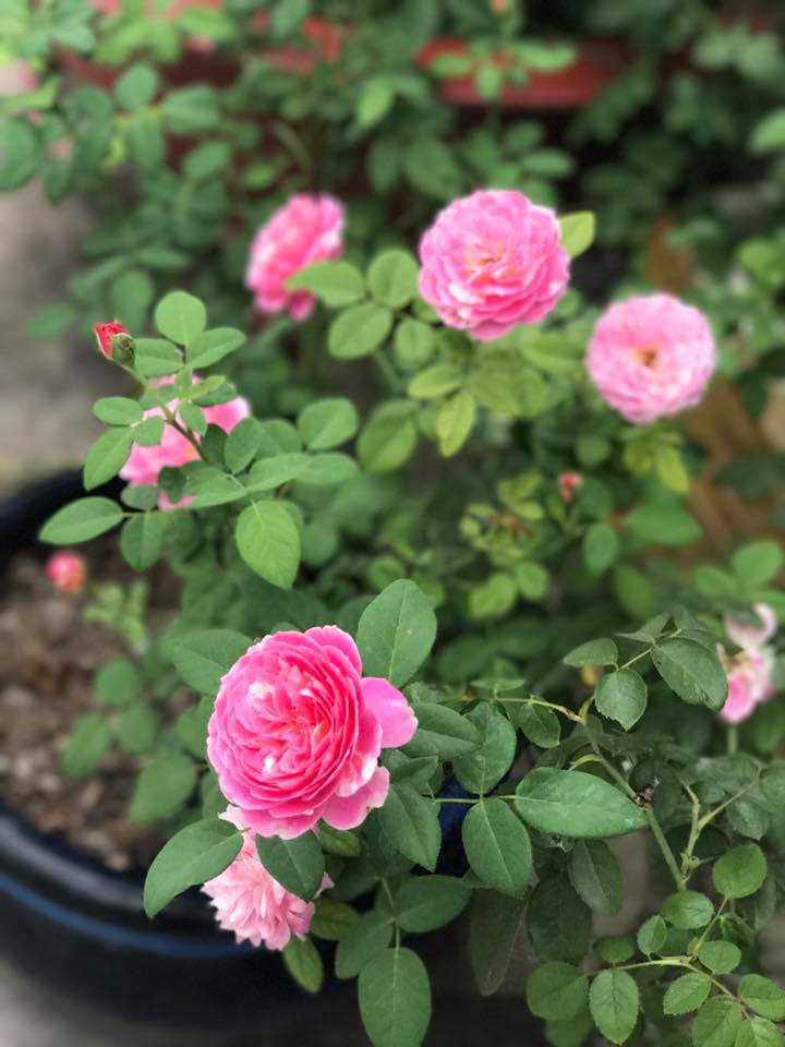 Chú ý: vào thời điểm nắng nóng, khi tưới nước tôi tưới rất lâu, tưới đi tưới lại để đảm bảo chậu hoa hồng thấm ướt hoàn toàn. Tránh trường hợp tưới mà chỉ ướt phần đất trồng ở bề mặt hoặc dưới đáy còn phần chính giữa thì khô queo. Tưới như vậy chậu hoa hồng rất mau khô trở lại.
